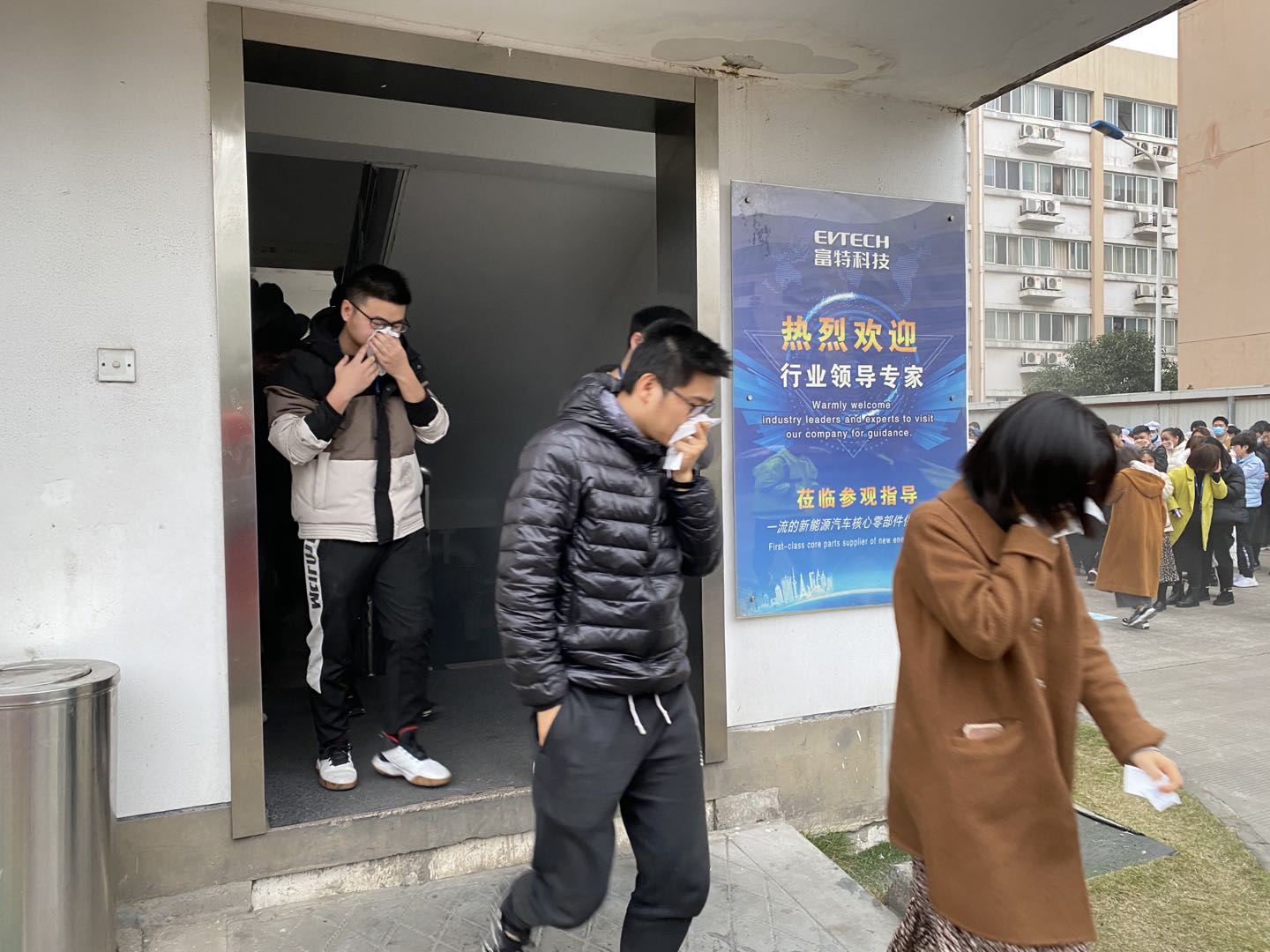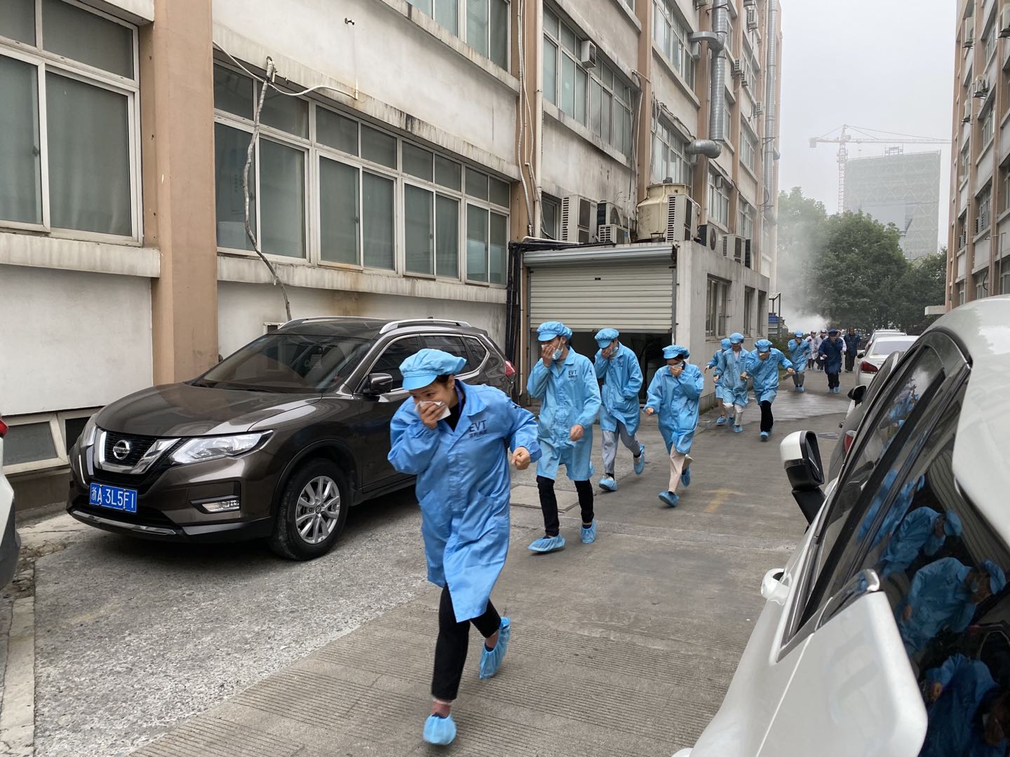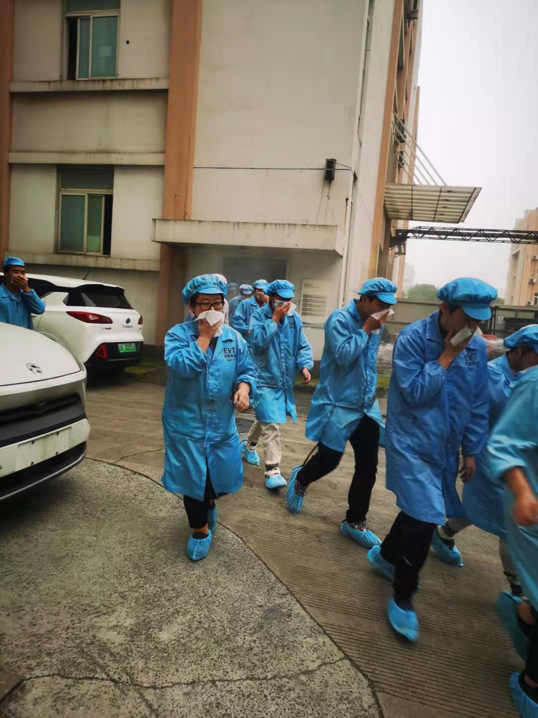 隨著警報響起,員工們紛紛有序地從辦公區(qū)域向指定安全區(qū)域轉(zhuǎn)移。