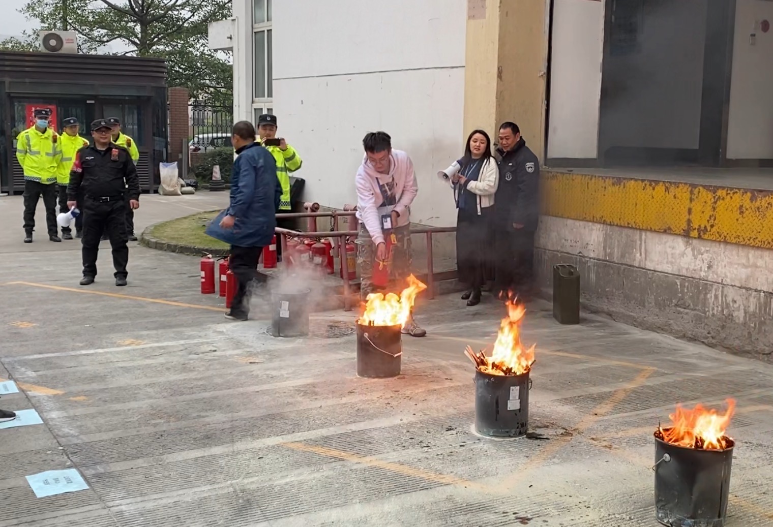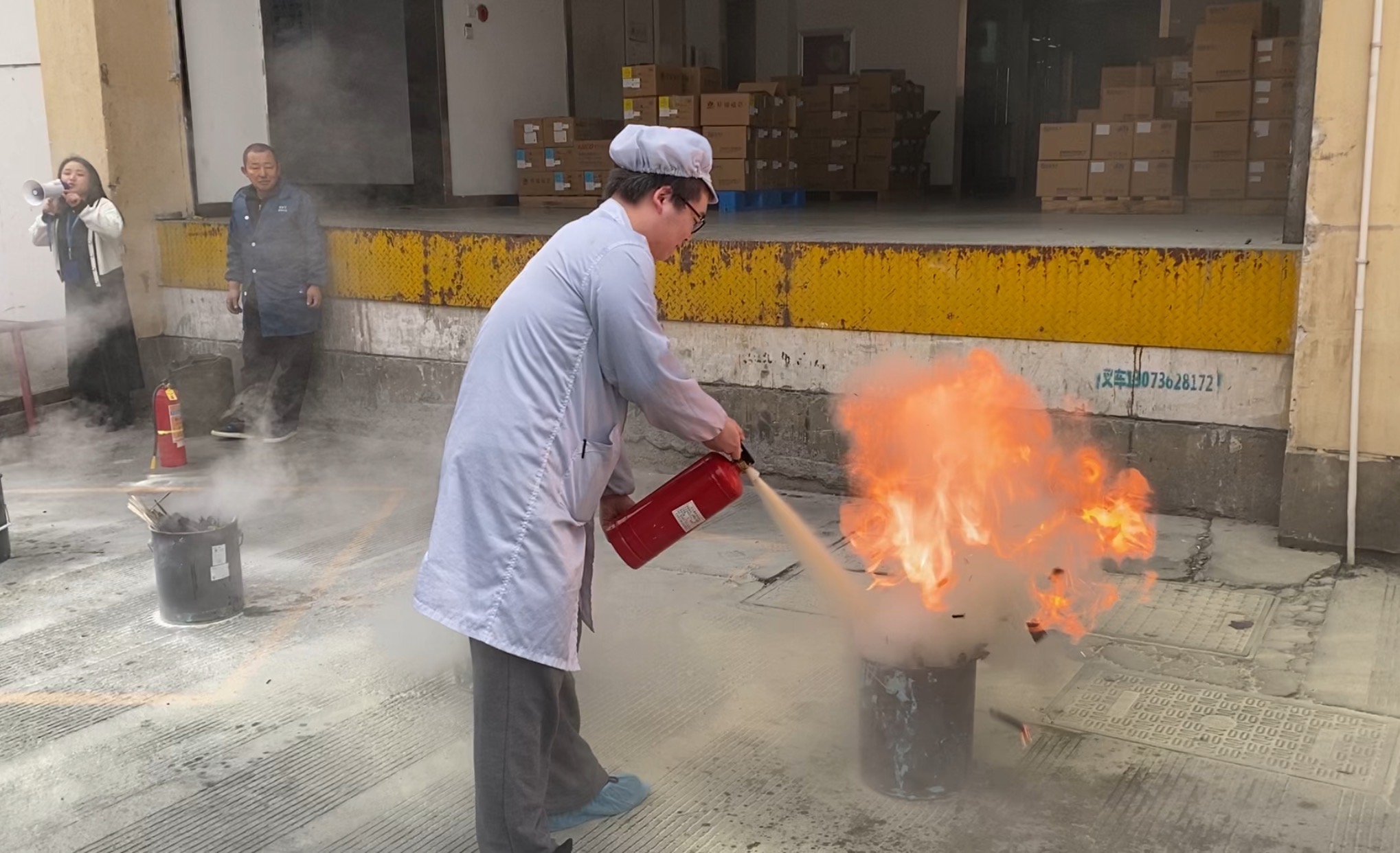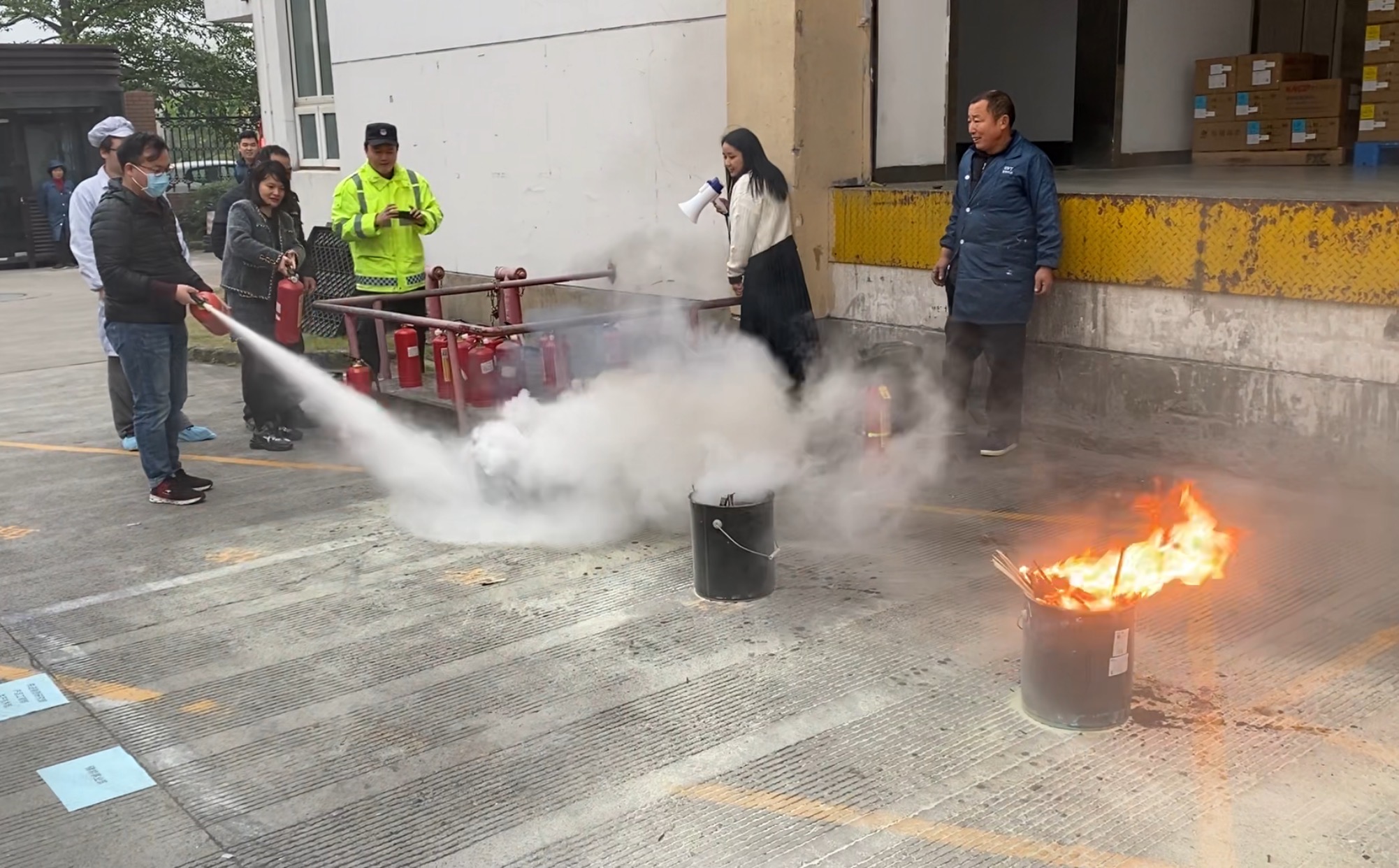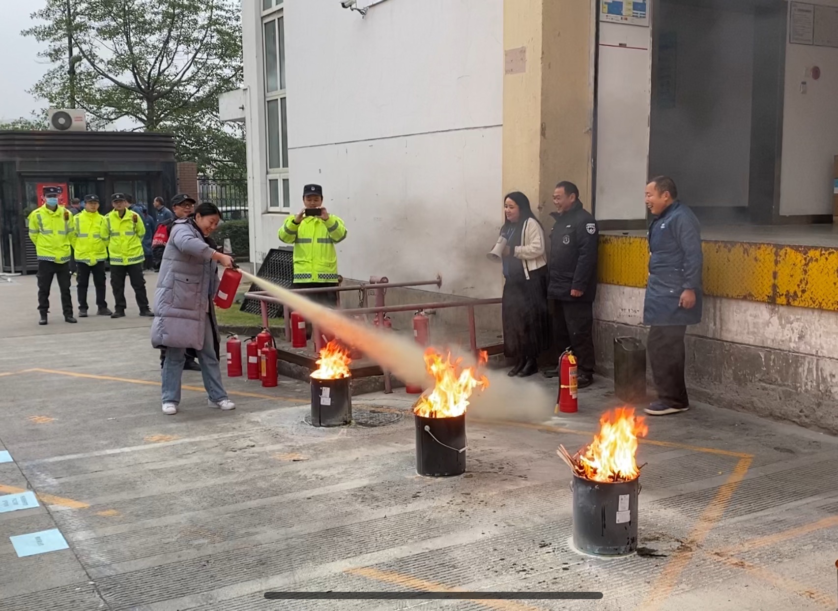 員工們在完成學(xué)習(xí)、掌握滅火器的使用技能后,紛紛上前進(jìn)行演示。