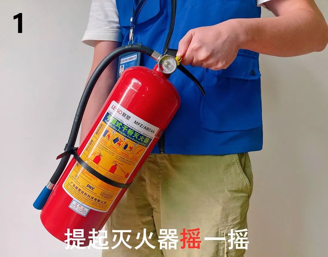 在錢隊長的細(xì)心指導(dǎo)下,大家學(xué)習(xí)并掌握了滅火器的正確使用方式,牢牢記住了滅火器使用的四字訣“搖、拉、握、壓”。